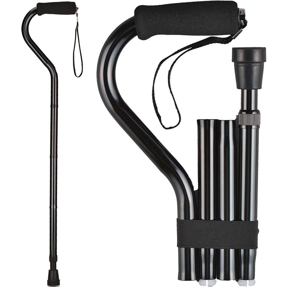 FOLDABLE TRAVEL, STORE & CARRY WALKING CANE folds and unfolds easily so you can make your cane compact and store in a purse, bag or small compartment.