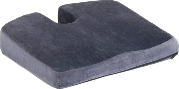 Coccyx cutout reduces pressure on the tailbone and spine. Memory foam provides a comfortable seating surface. Anatomic design helps maintain correct posture and stability while seated. Soft and luxurious grey Velour‚Ñ¢ like fabric cover is removable and machine washable.